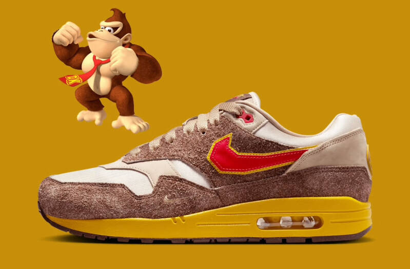 Duidelijk geïnspireerd door Donkey Kong Country voor de Super Nintendo, bevat deze Air Max 1 verschillende herkenbare elementen uit de game, gecombineerd met kenmerkende Swoosh-details.