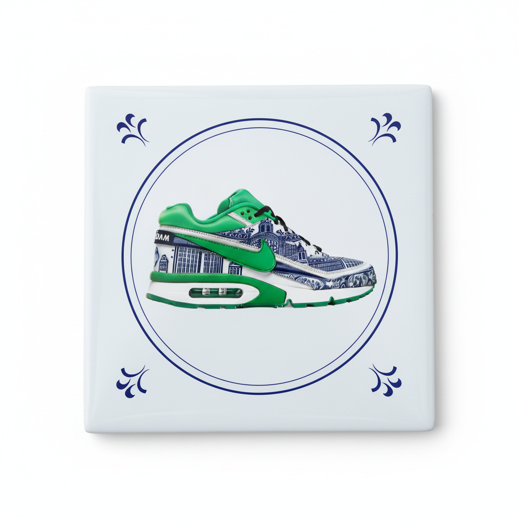 Discover a unique and modern twist on a Dutch classic with our collection of Delft Blue Tiles, featuring iconic sneakers like the Air Max 1, Air Max 90, and Air Max BW.