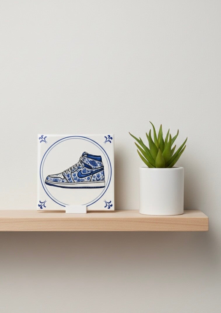 These exclusive tiles combine the traditional beauty of Delft Blue craftsmanship with contemporary sneaker culture, bringing a playful and stylish vibe to any interior. Perfect for fans of streetwear, art, and Dutch heritage. Each tile is crafted with care, bringing the silhouettes of these legendary sneakers to life in the characteristic Delft Blue palette.